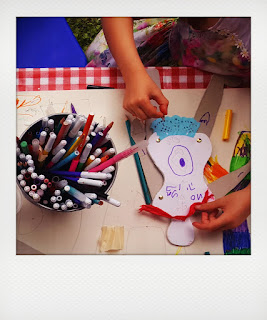 What a treat to be at this little one's Alice in Wonderland party. It was a stinking hot day and the hosts had a pretty little garden which they decorated beautifully. Here the girls are decorating their playing card puppets.